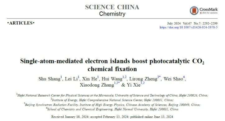 標(biāo)題:Single-atom-mediated electron islands boost photocatalytic CO2 chemical fixation