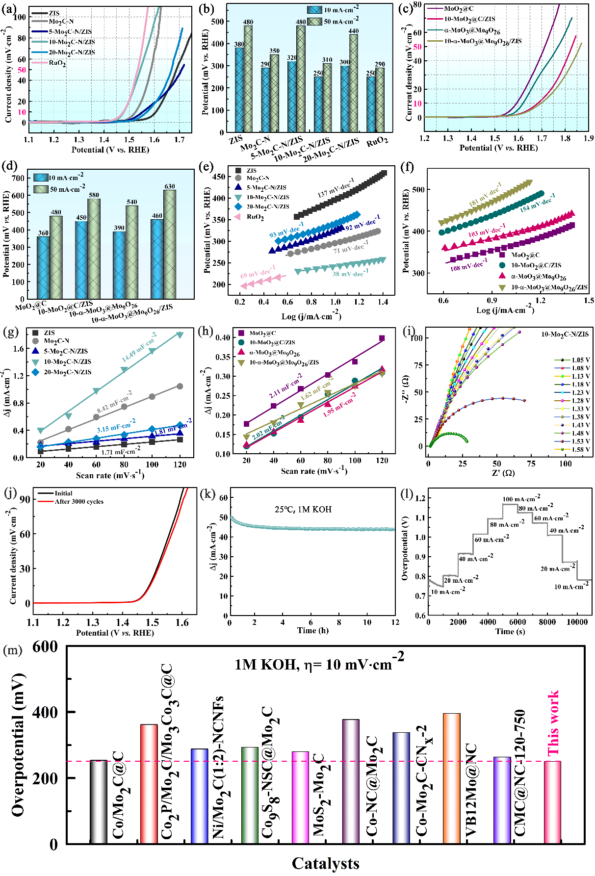 圖11 Mo2C-N, ZIS和Mo2C-N/ZIS的OER性能分析
