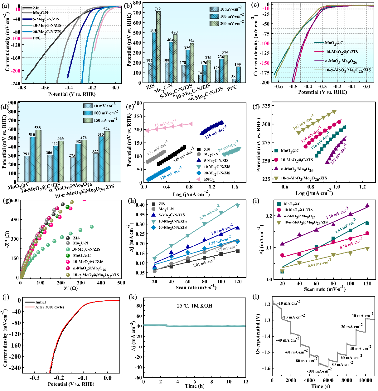 圖10 Mo2C-N, ZIS和Mo2C-N/ZIS的HER性能分析