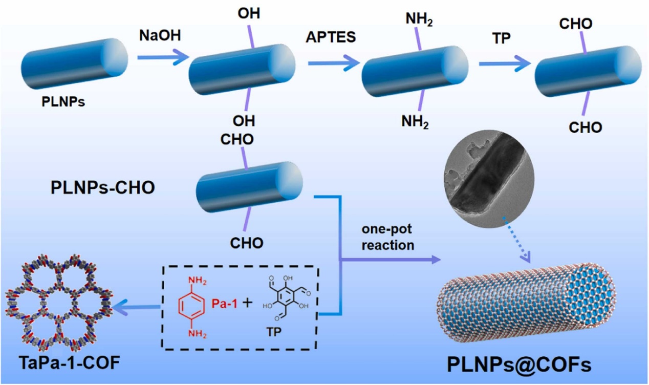 方案 1. 制備PLNPs@COFs 的示意圖。