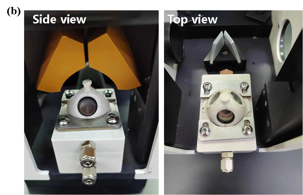 圖3 DRIFTS電池示意圖(a)和照片(b)