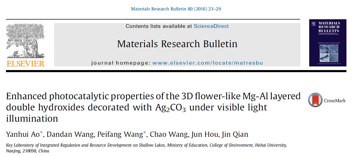 當前位置 : 首頁 > 資訊動態(tài) > 論文發(fā)表 > Enhanced photocatalytic properties of the 3D flower-like Mg-Al layered double hydroxides decorated with Ag2CO3 under visible light illumination