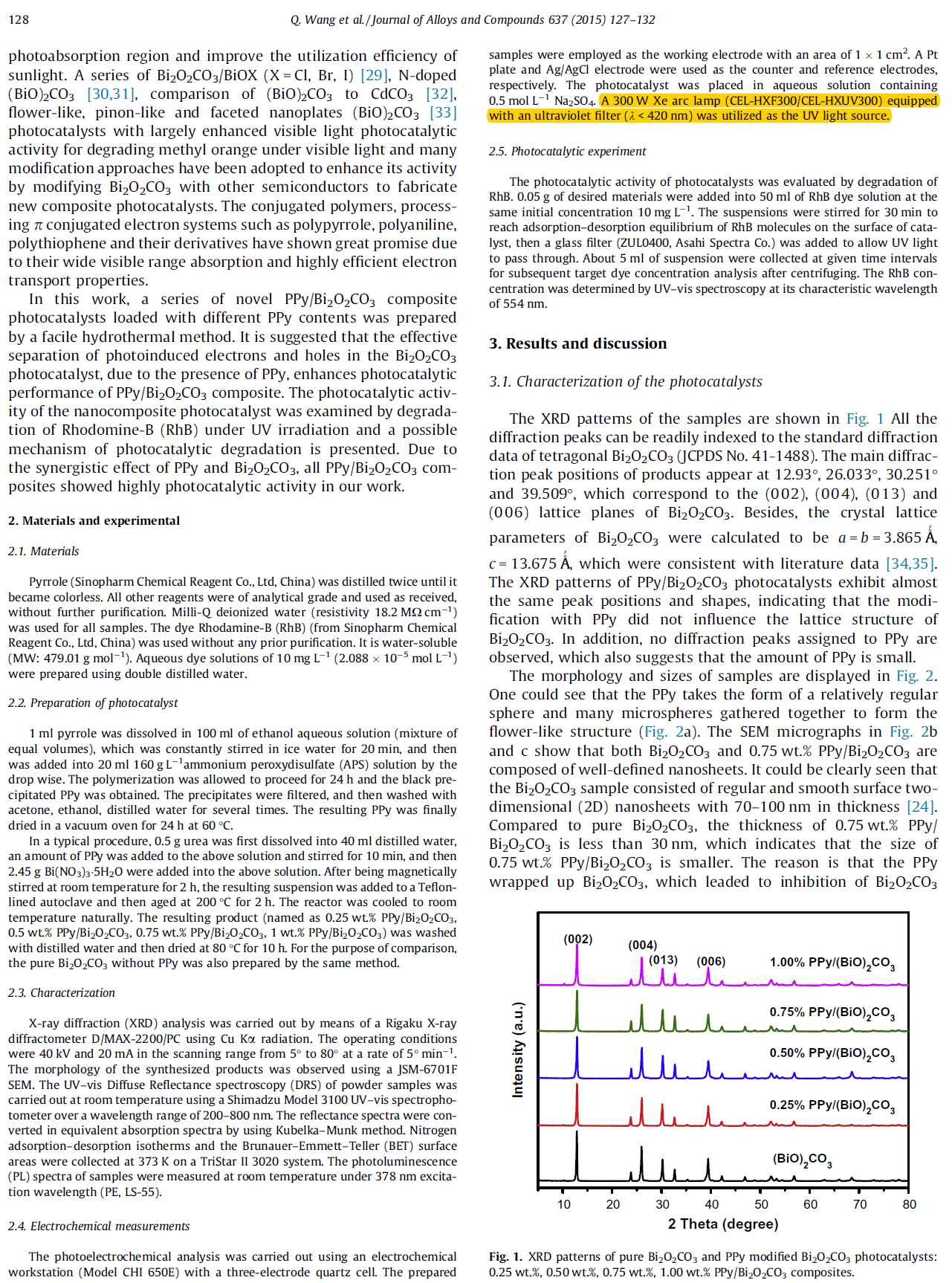 當(dāng)前位置 : 首頁 > 資訊動態(tài) > 論文發(fā)表 > Synthesis and characterization of novel PPy/Bi2O2CO3 composite with improved photocatalytic activity for degradation of Rhodamine-B