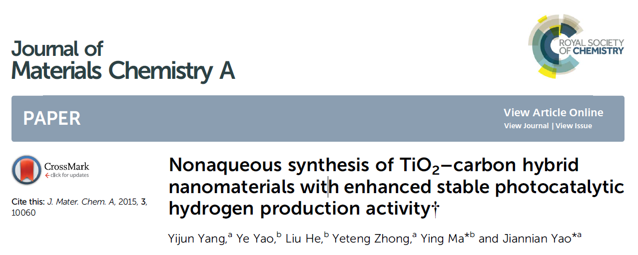 當前位置 : 首頁 > 資訊動態(tài) > 論文發(fā)表 > Nonaqueous synthesis of TiO2–carbon hybrid nanomaterials with enhanced stable photocatalytic hydrogen production activity†