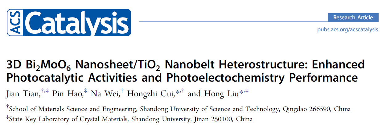當前位置 : 首頁 > 資訊動態(tài) > 論文發(fā)表 > 3D Bi2MoO6 Nanosheet/TiO2 Nanobelt Heterostructure: Enhanced Photocatalytic Activities and Photoelectochemistry Performance