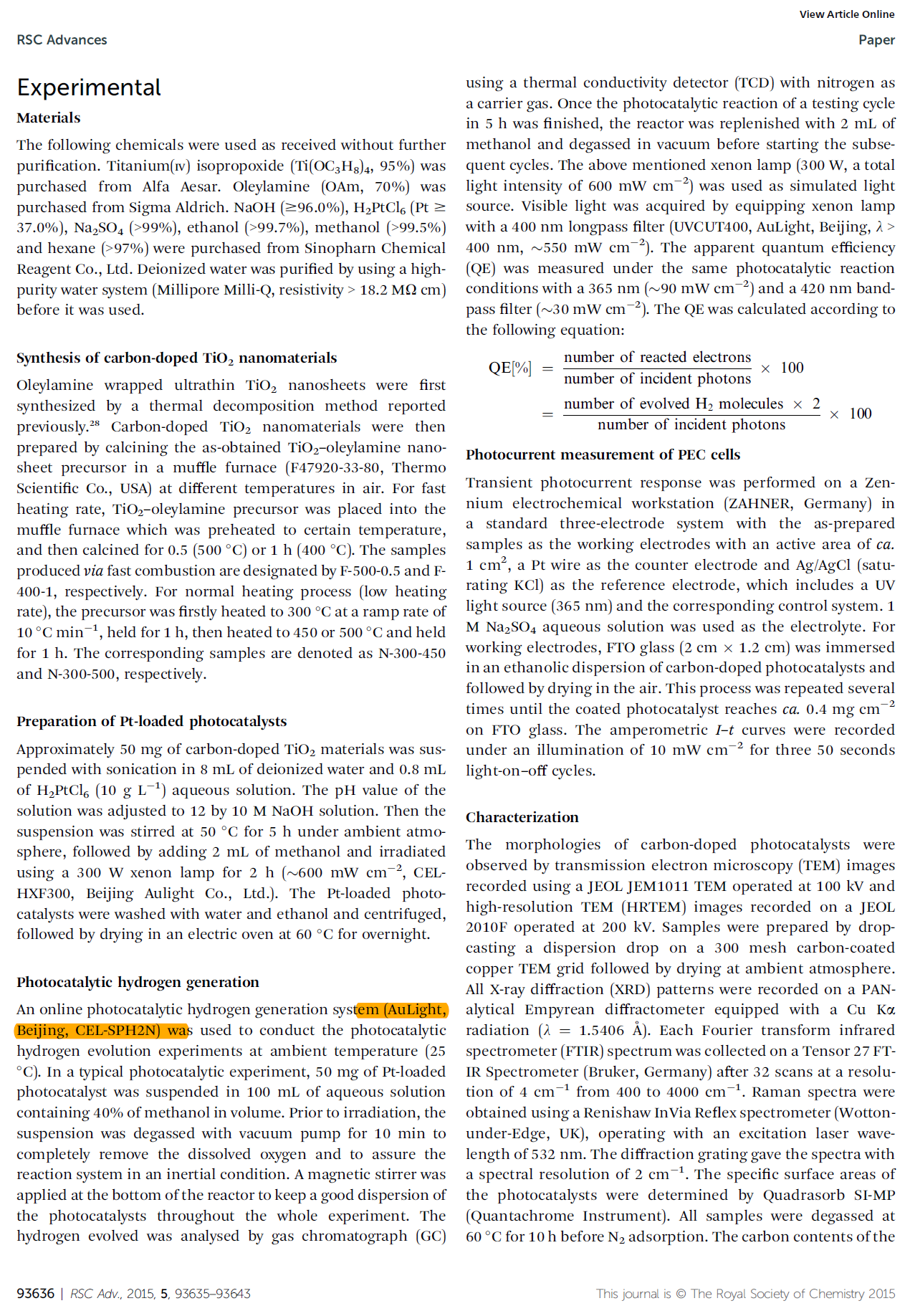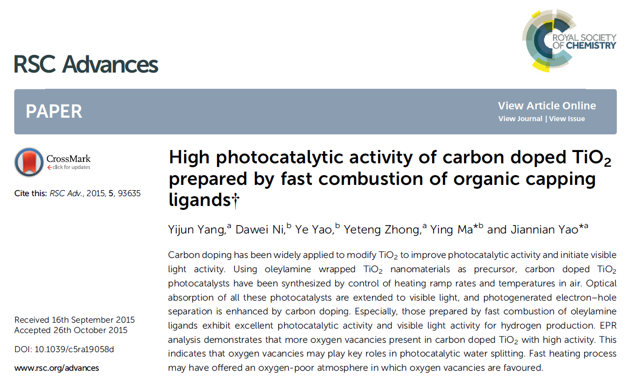 High photocatalytic activity of carbon doped TiO2 prepared by fast combustion of organic capping ligands†
