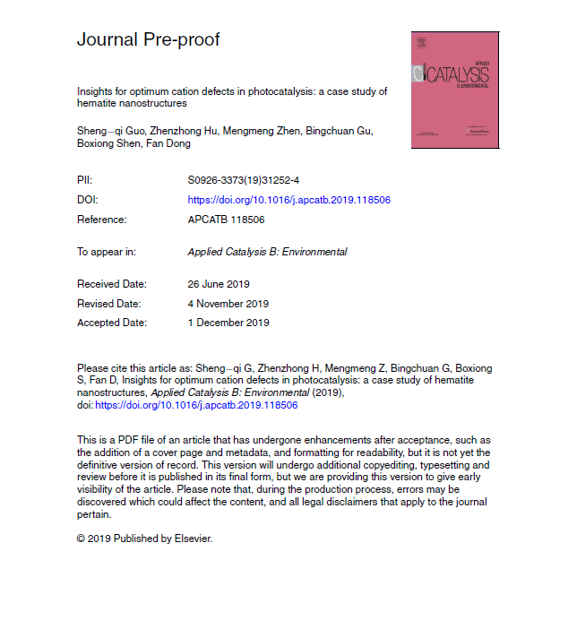 當(dāng)前位置 : 首頁 > 資訊動態(tài) > 論文發(fā)表 > Insights for optimum cation defects in photocatalysis: a case study of hematite nanostructures