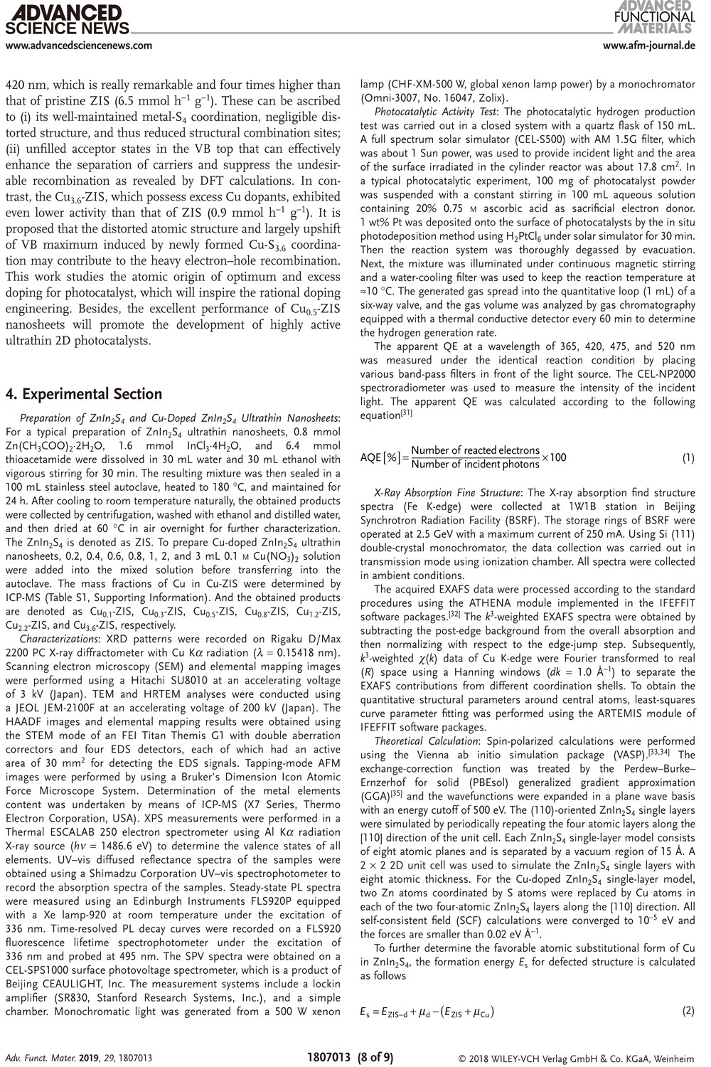 Atomic Insights for Optimum and Excess Doping in Photocatalysis: A Case Study of Few-Layer Cu-ZnIn2S4