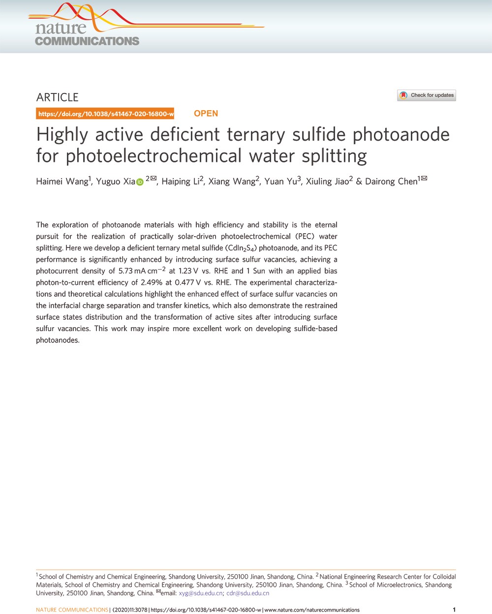 下一篇:Ef?cient photocatalytic hydrogen evolution with ligand engineered all-inorganic InP and InP/ZnS colloidal quantum dots