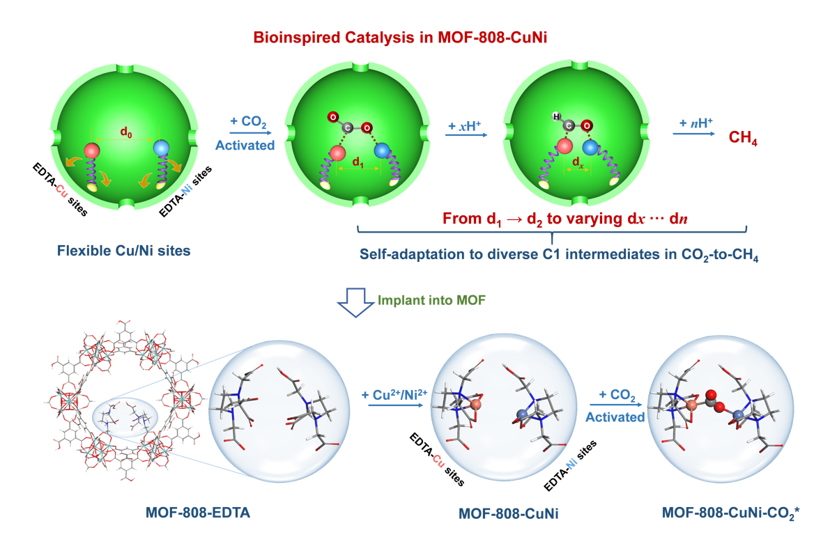 MOF中自適應(yīng)雙點(diǎn)位高效選擇性光還原CO2到CH4