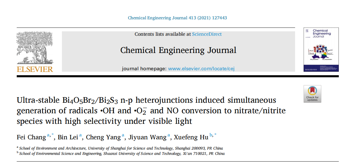 標題:Ultra-stable Bi4O5Br2/Bi2S3 n-p heterojunctions induced simultaneous generation of radicals ·OH and ·O2? and NO conversion to nitrate/nitrite species with high selectivity under visible light