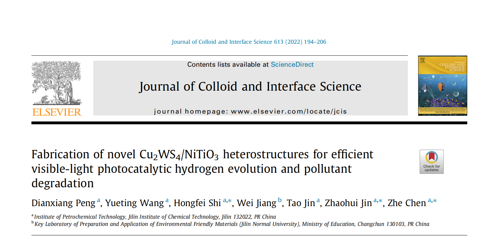 4. 作者信息:第一作者是 彭殿祥(吉林化工學院)。通訊作者為 石洪飛副教授、金朝輝教授、陳哲教授(吉林化工學院)。