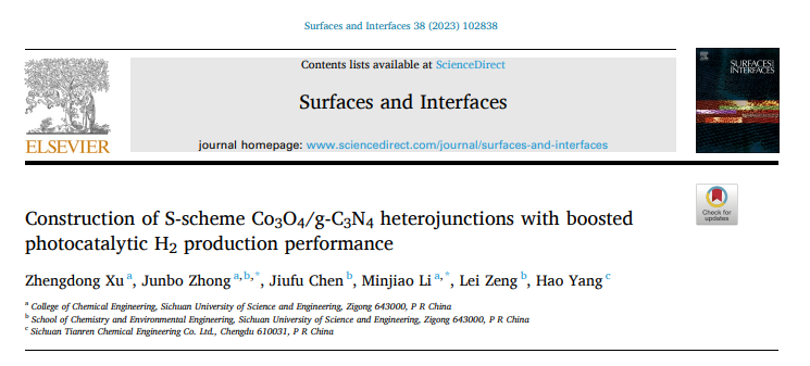 標(biāo)題: Construction of S-scheme Co3O4/g-C3N4 heterojunctions with boosted photocatalytic H2 production performance