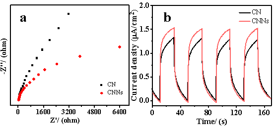 圖3. CN和CNNs樣品的(a)EIS和(b)PC圖