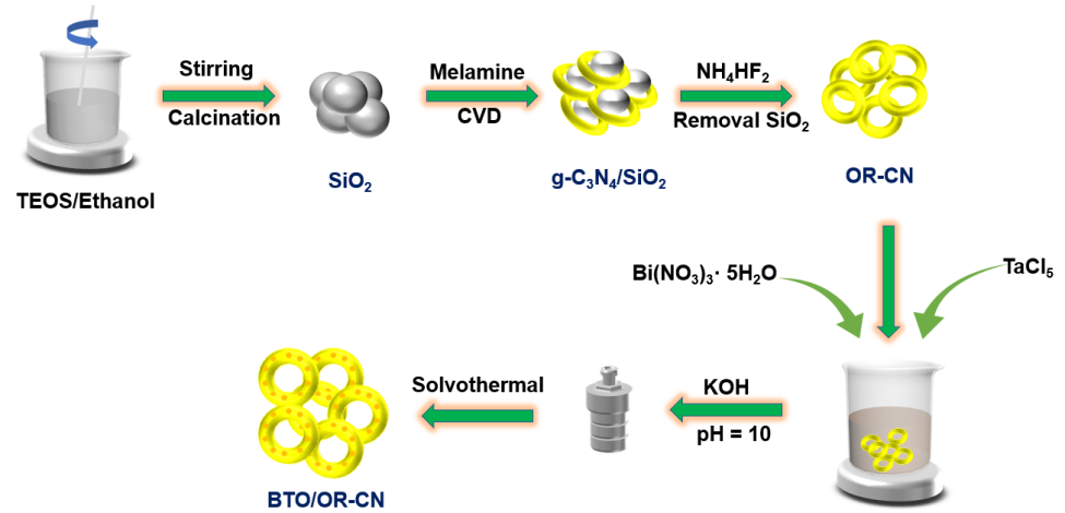 圖1. 制備BTO/OR-CN化合物的實驗過程
