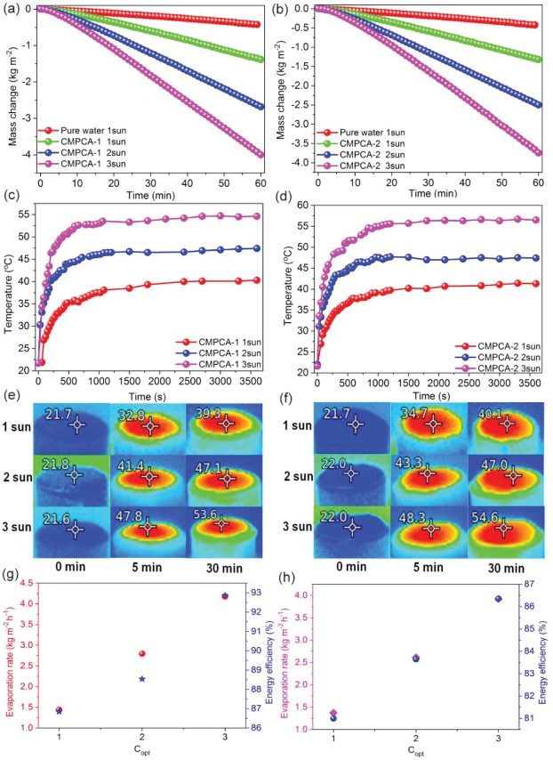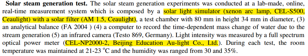 圖1光熱材料太陽(yáng)能蒸發(fā)將低階的太陽(yáng)能轉(zhuǎn)化為高階的熱能和蒸汽能性能測(cè)試