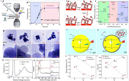 光催化水裂解產(chǎn)氫,是一種有效的氫能生產(chǎn)技術(shù)手段。大多數(shù)實驗和理論研究仍然局限于在單分子水層或者水蒸氣環(huán)境條件下的反應(yīng)過程,這與實際光催化裂解水過程中的光照以及液態(tài)水環(huán)境相差甚遠。另外需要指出的是,自然界中大多數(shù)光催化產(chǎn)氫過程都是在固液界面進行的。因此,如何發(fā)展一種新的實驗技術(shù)手段和計算方法,能夠?qū)崿F(xiàn)在液體水以及光照條件下,在納米甚至原子尺度觀察光催化裂解水過程中催化劑與水界面的化學(xué)變化過程,進而弄清真實光催化過程中的原子和電子結(jié)構(gòu),具有非常重要的科學(xué)研究價值。