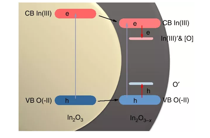 化學(xué)計量比氧化銦(In2O3)的納米構(gòu)造形式已經(jīng)被證明是二氧化碳?xì)庀嗉託浞磻?yīng)的高效催化劑。在光或者熱的幫助下,這些轉(zhuǎn)變都可得以推進(jìn);然而淺黃色氧化銦有限的光學(xué)吸收強(qiáng)度卻阻止其進(jìn)一步應(yīng)用發(fā)展。因此,為了更好地利用太陽能的光和熱,黑色的氧化銦可能具有更大的優(yōu)勢。