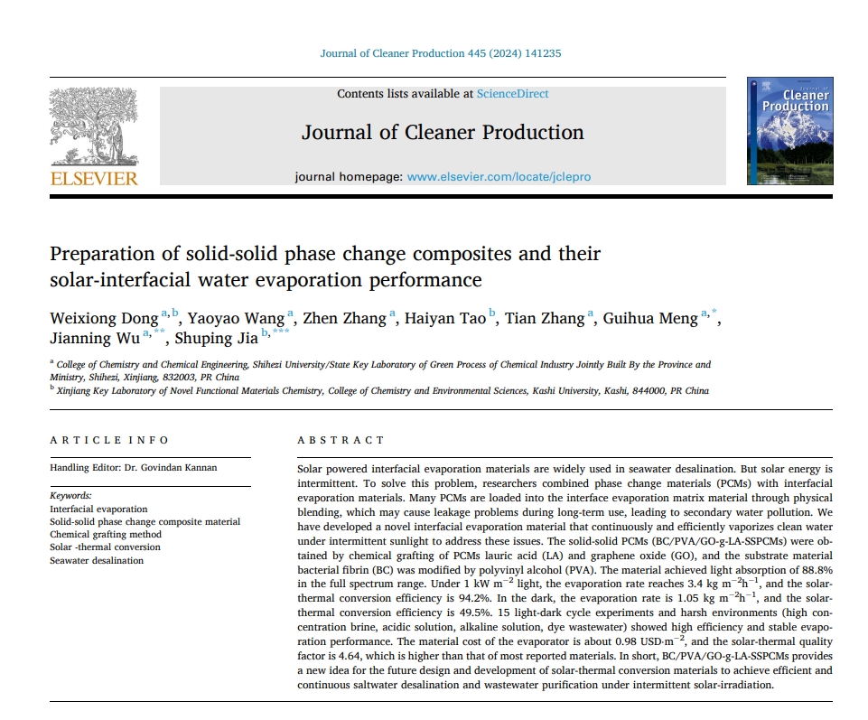 標題:Preparation of solid-solid phase change composites and theirsolar-interfacial water evaporation performance