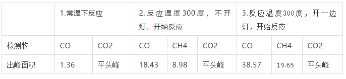 2)反應(yīng)溫度300度,不開(kāi)燈,開(kāi)始反應(yīng),檢測(cè)結(jié)果: