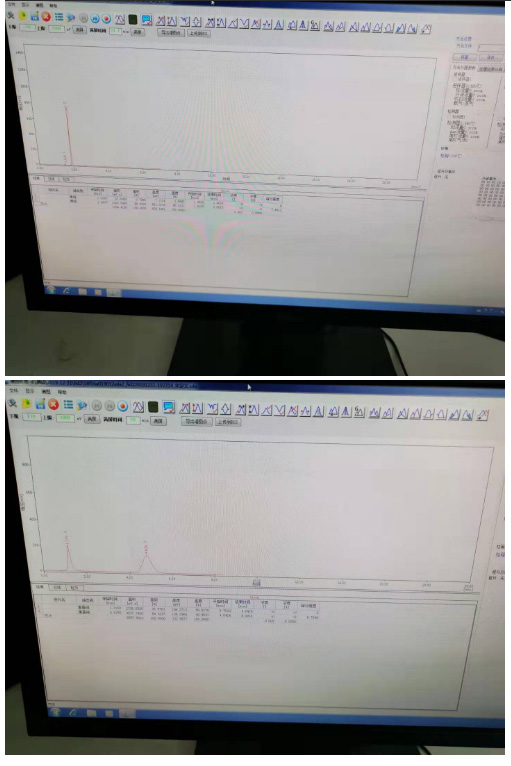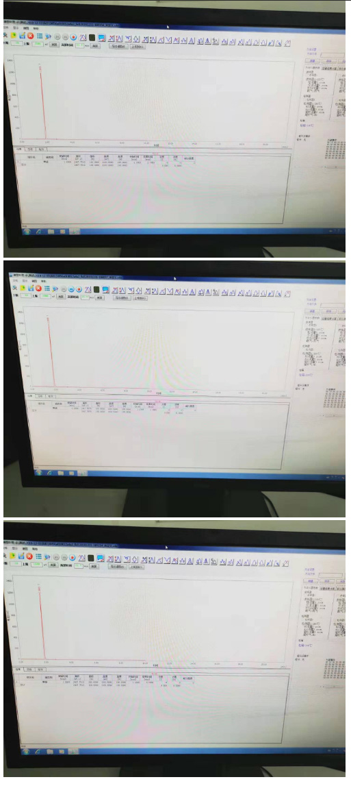 2)反應(yīng)溫度250度,不開(kāi)燈,甲苯開(kāi)始有降解反應(yīng), 檢測(cè)結(jié)果: