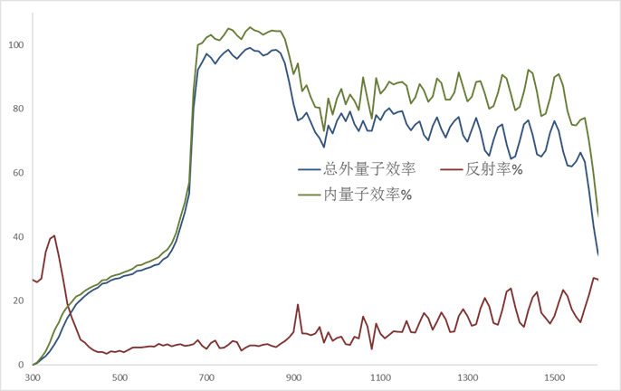 內(nèi)量子效率曲線:剔除了反射光的影響,真實反應(yīng)光電轉(zhuǎn)化的效率
