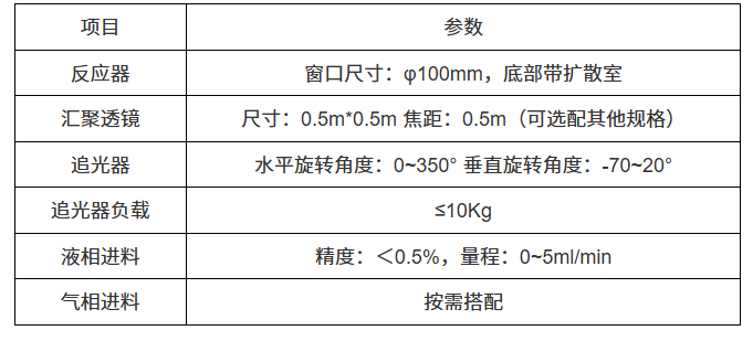本裝置為一套微型自動追光反應裝置,可搭配匯聚透鏡增加實驗所需光強,適用于膜狀催化劑的評價及篩選,適用于適用于氣體、液體或氣液同時進料;氣固、液固、氣液固反應。能夠?qū)崿F(xiàn)溫度、氣相流量、液相流量的控制,配合色譜等分析儀器檢測分析。