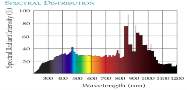 4)發(fā)光總輸出功率:50W 300nm~2500nm(無臭氧);200nm~2500nm(有臭氧);