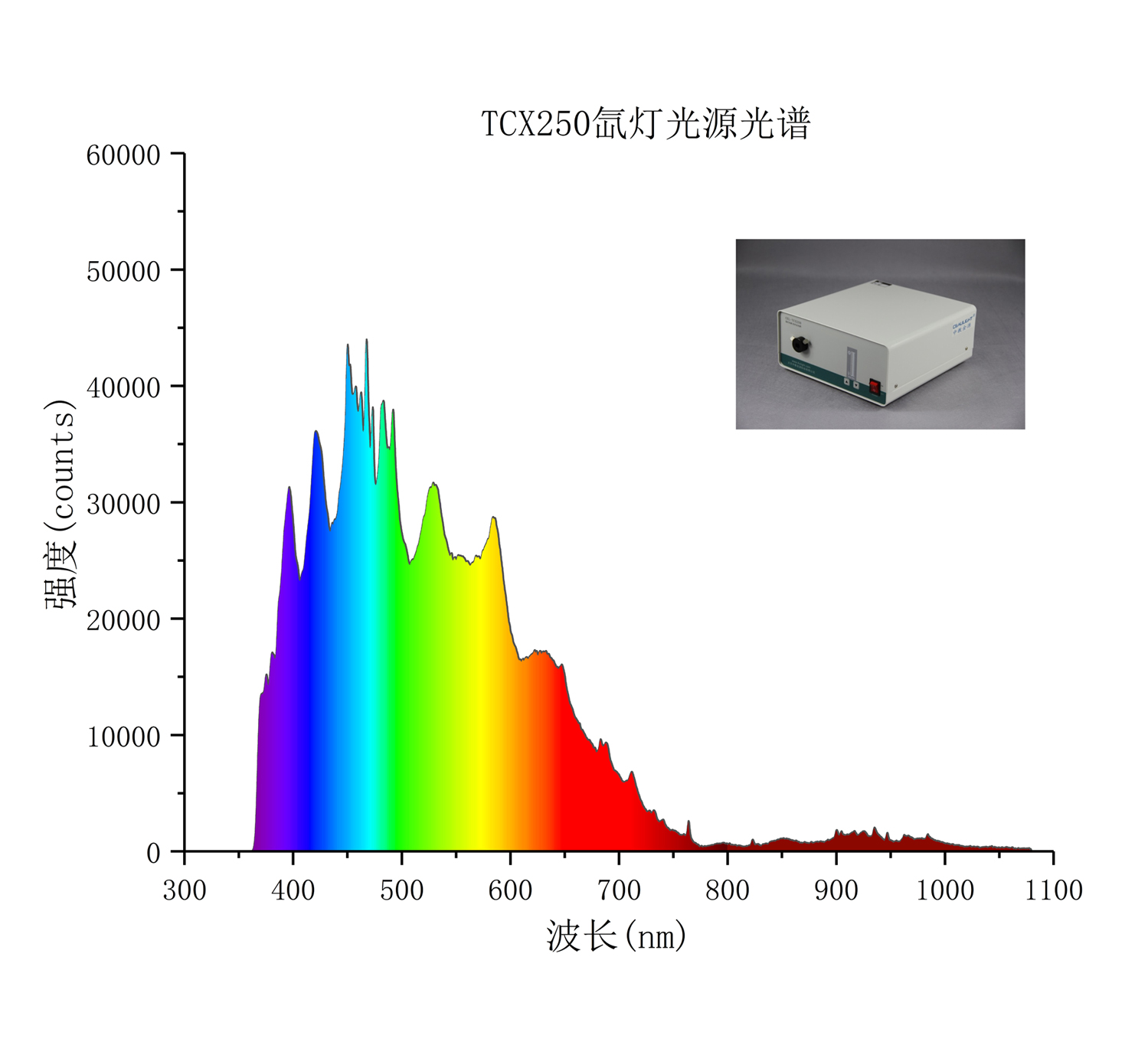 TCX氙燈光源是采用先進(jìn)的電控開關(guān)電路,為高壓短弧氙燈提供電源。該光源選用球型高壓短弧氙氣燈作為發(fā)光體。在電路的高頻高壓下,使得燈泡正負(fù)極間點(diǎn)狀放電發(fā)光,產(chǎn)生從紫外到紅外的全光譜輻射光源,可見區(qū)光色極似日光。
