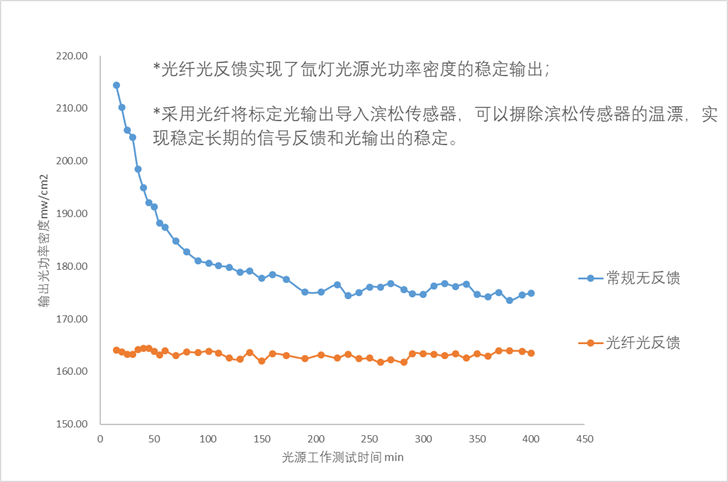 光穩(wěn)定性 | 光纖光反饋實(shí)現(xiàn)了氙燈光源光功率密度的穩(wěn)定輸出;采用光纖將標(biāo)定光輸出導(dǎo)入濱松傳感器,可以摒除濱松傳感器的溫漂,實(shí)現(xiàn)穩(wěn)定長期的信號反饋和光輸出的穩(wěn)定。 | |