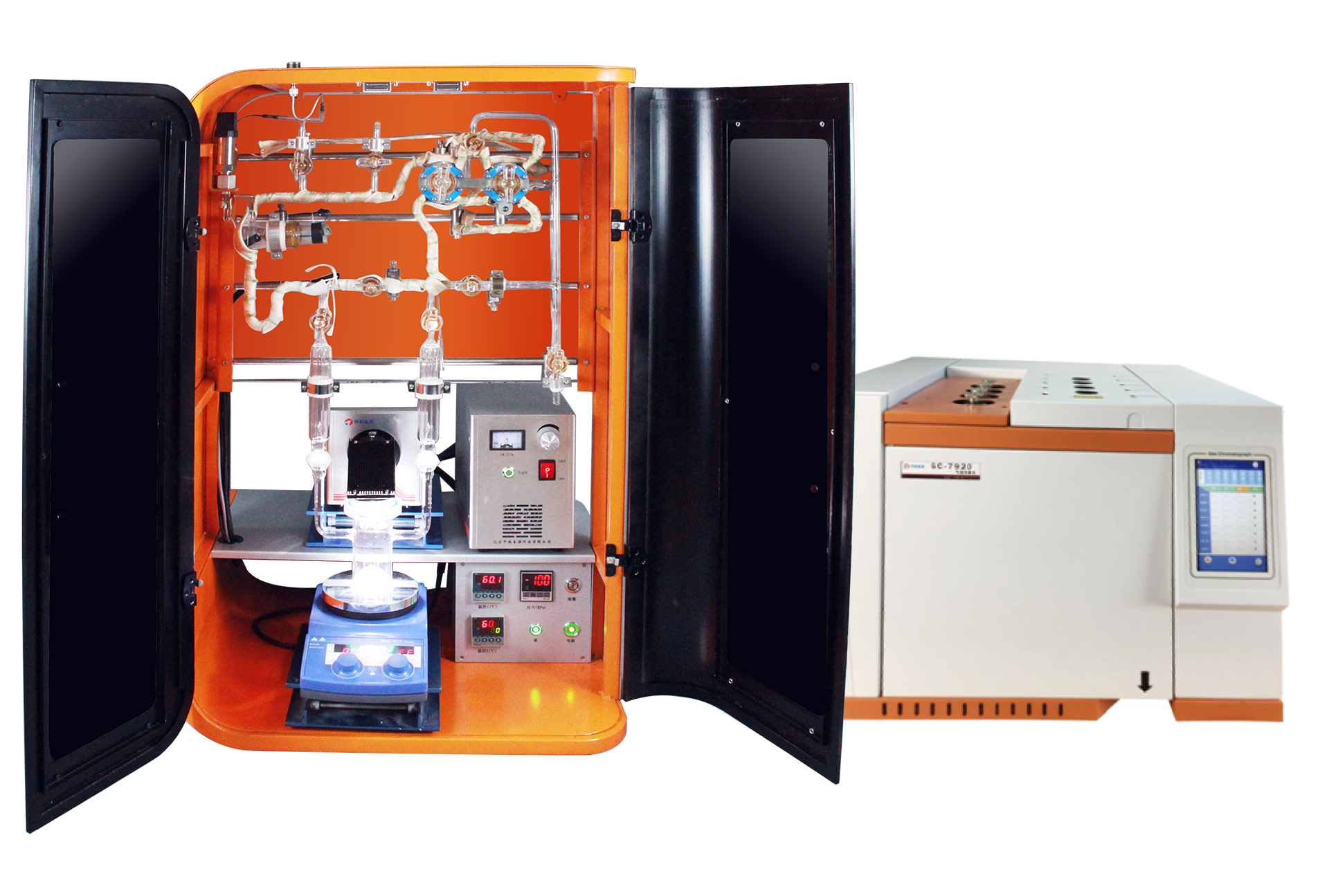 13.自動進(jìn)樣閥門為氣動控制,實現(xiàn)閥門控溫恒溫<200℃,進(jìn)樣連接管路有加熱<100℃?!?4.系統(tǒng)中的反應(yīng)部分、冷凝回流、循環(huán)部分、樣品采集、樣品分析等5部分,采取了7段溫度控制,實現(xiàn)了全流程溫度控制,恒溫控制溫度<200℃