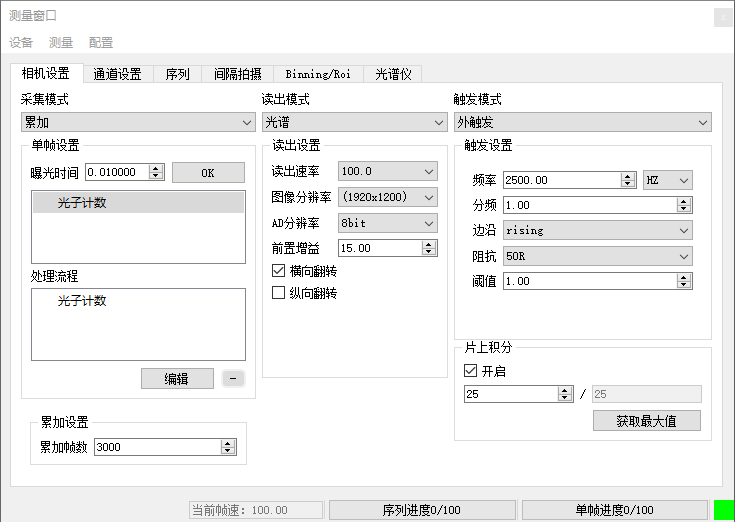圖3.14 光譜儀設(shè)置參數(shù)窗口